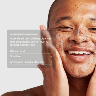 Not all cleansers are made equally. Water-resistant sunscreen products tend to be more difficult to remove due to the presence of film formers, but Gentle Amino Powerwash contains both water- and oil-based cleansing ingredients, resulting in a gentle yet incredibly effective cleanse.